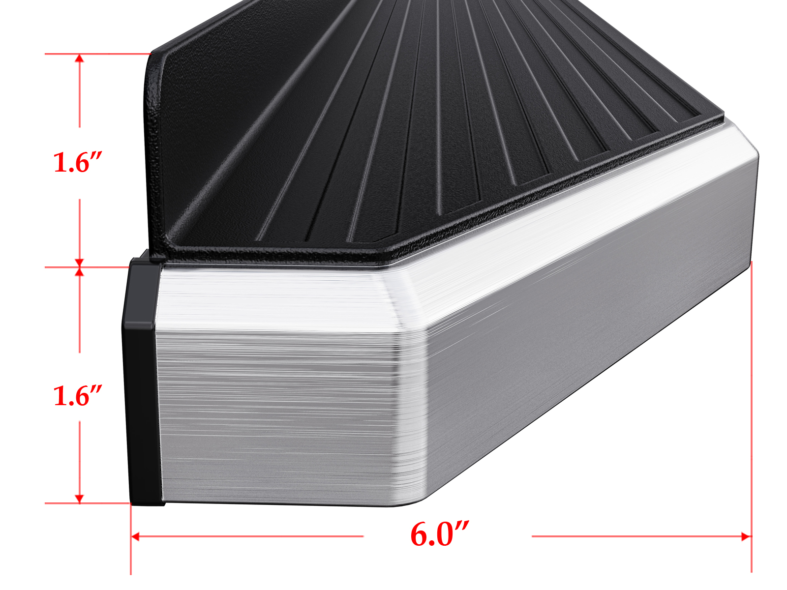 • The 6-inch-wide running board comes with a full-length ribbed step pad design that provides maximum grip and secure and easy access to the vehicle.