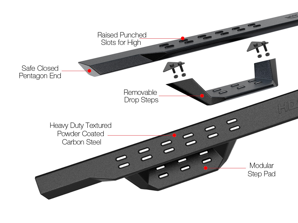• The running board features heavy-duty carbon steel construction; ensuring durability and reliability.