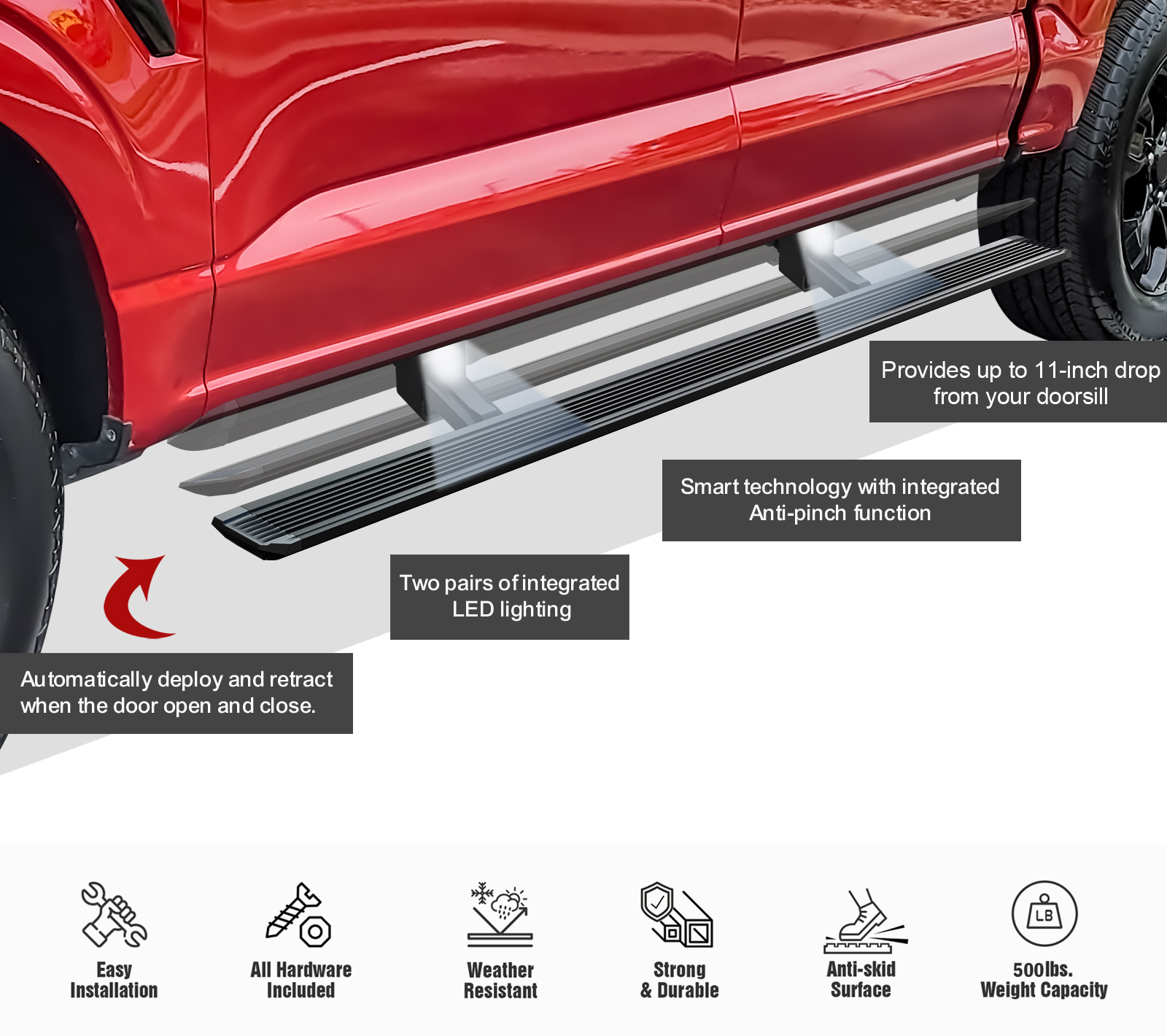 • The spacious Aluminum alloy slip-resistant step pad design ensures maximum grip and easy access to your vehicle.